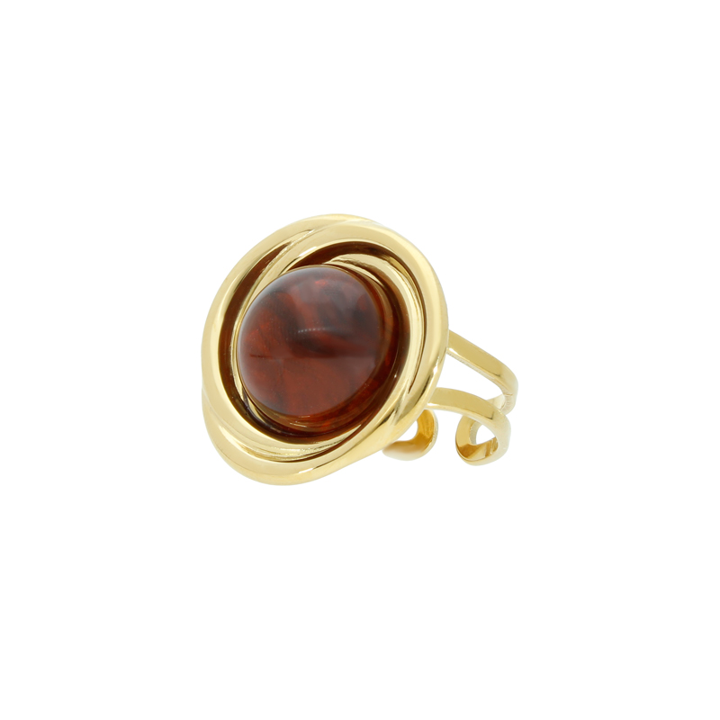 Anillo Acero Inoxidable Piedra Cafe A004524