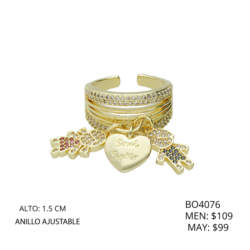 Anillo Chapa de Oro Niño Niña Color Corazon Piedras BO4076