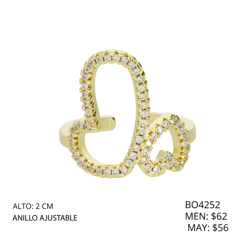 Anillo Dorado Corazones Piedras Chapa de Oro BO4252