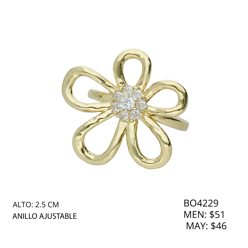 Anillo Dorado Flor Piedra Chapa de Oro BO4229