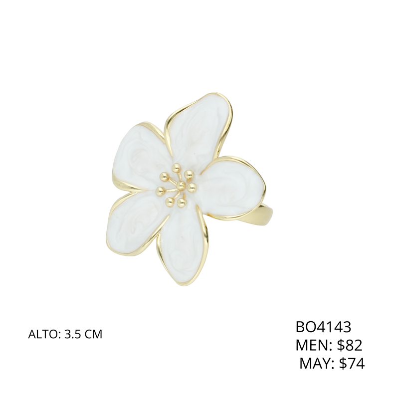 Anillo Flor Blanca Chapa de Oro BO4143
