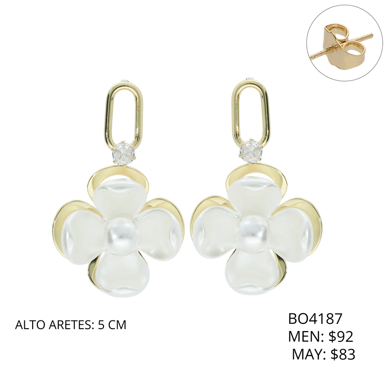 Arete Dorado Flor Perla Chapa de Oro BO4187