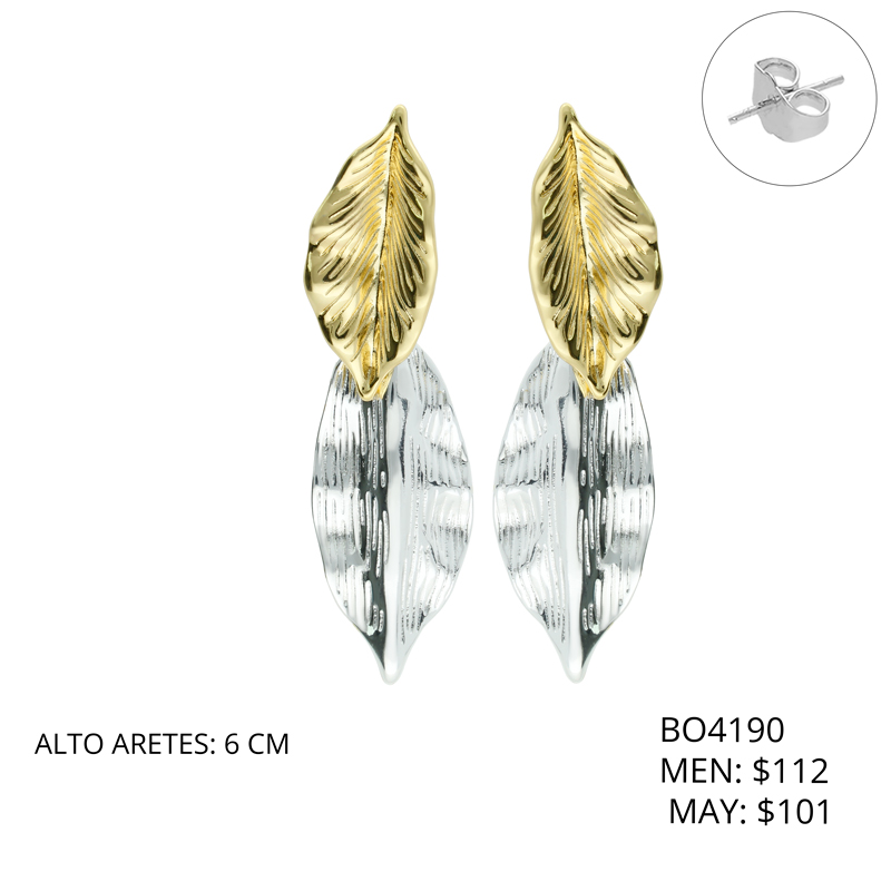Arete Hojas Bicolor Chapa de Oro BO4190
