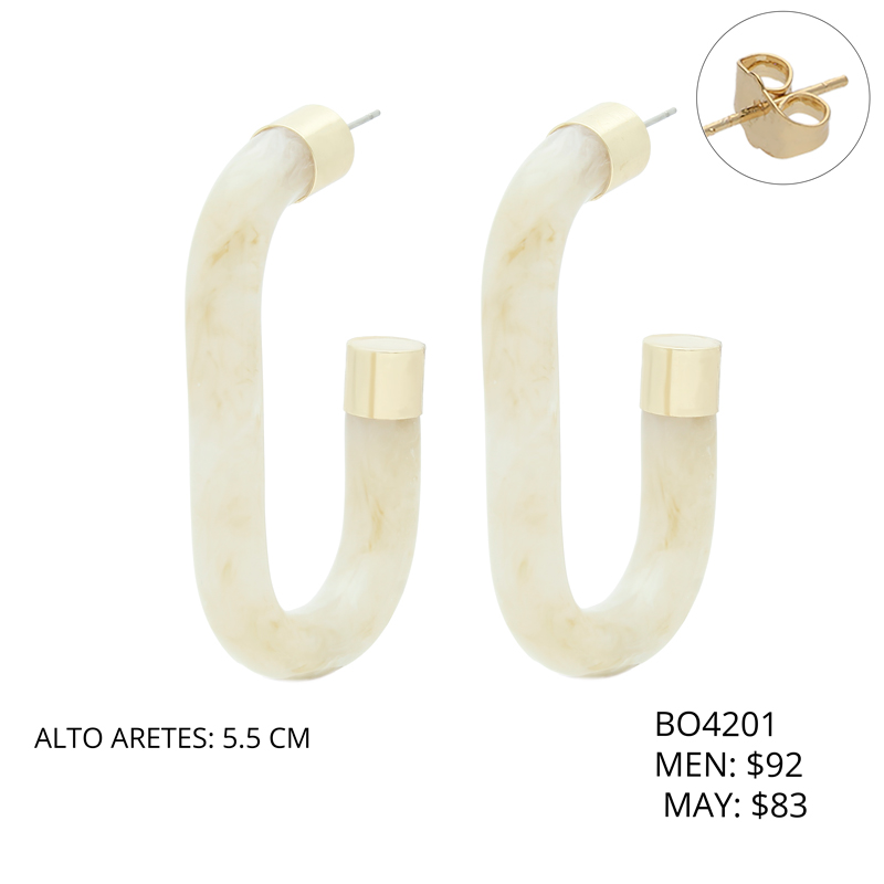 Arete Resina Blanca Chapa de Oro BO4201