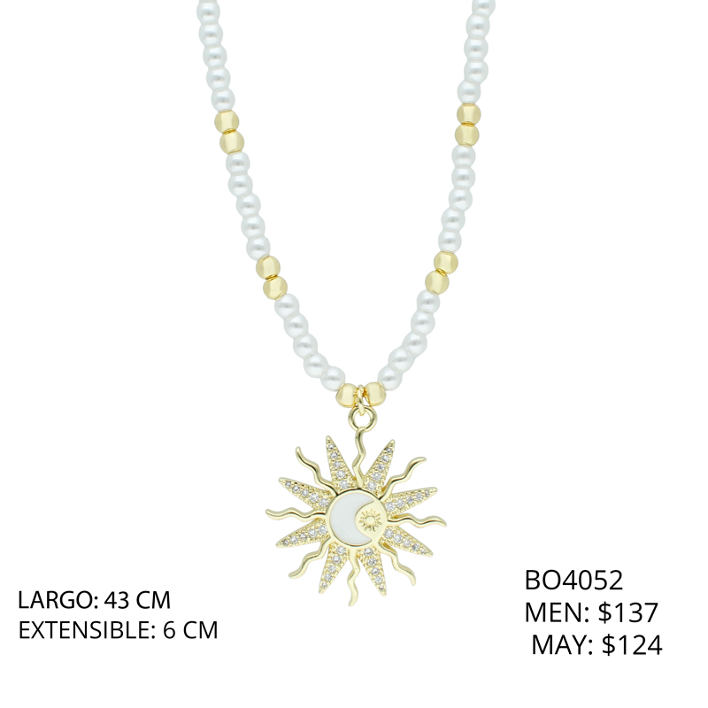 Collar Chapa de Oro Perla Sol Piedras BO4052