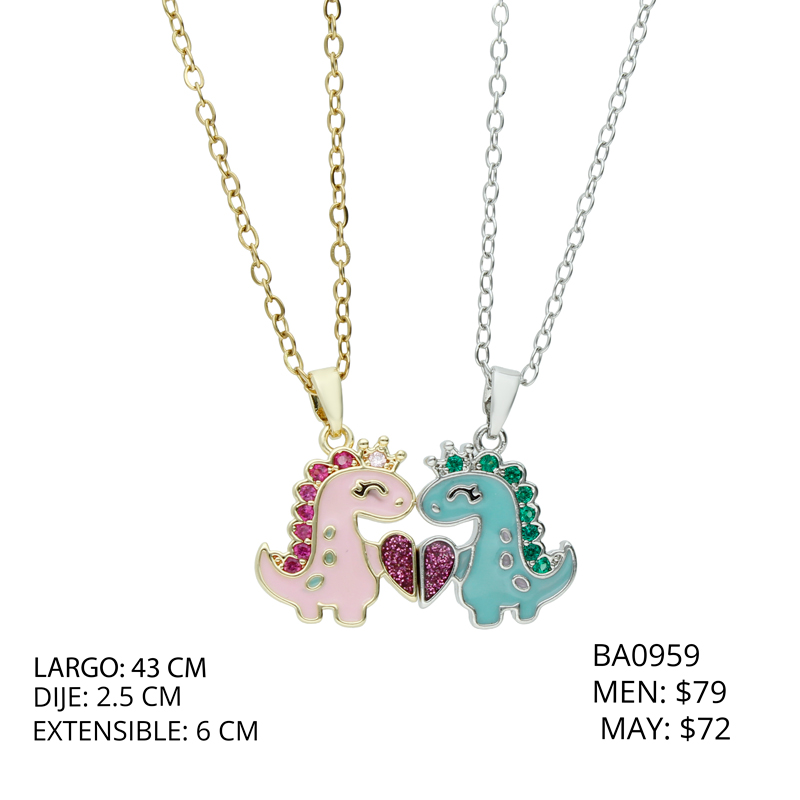 Collar Chapa de Oro y Acero Pareja De Dinosaurios BA0959