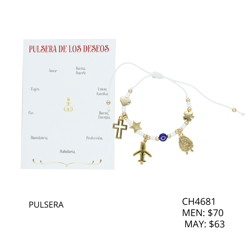 Pulsera Chapa de Oro Ojo Avion Cruz Trebol Oveja Estrella CH4681