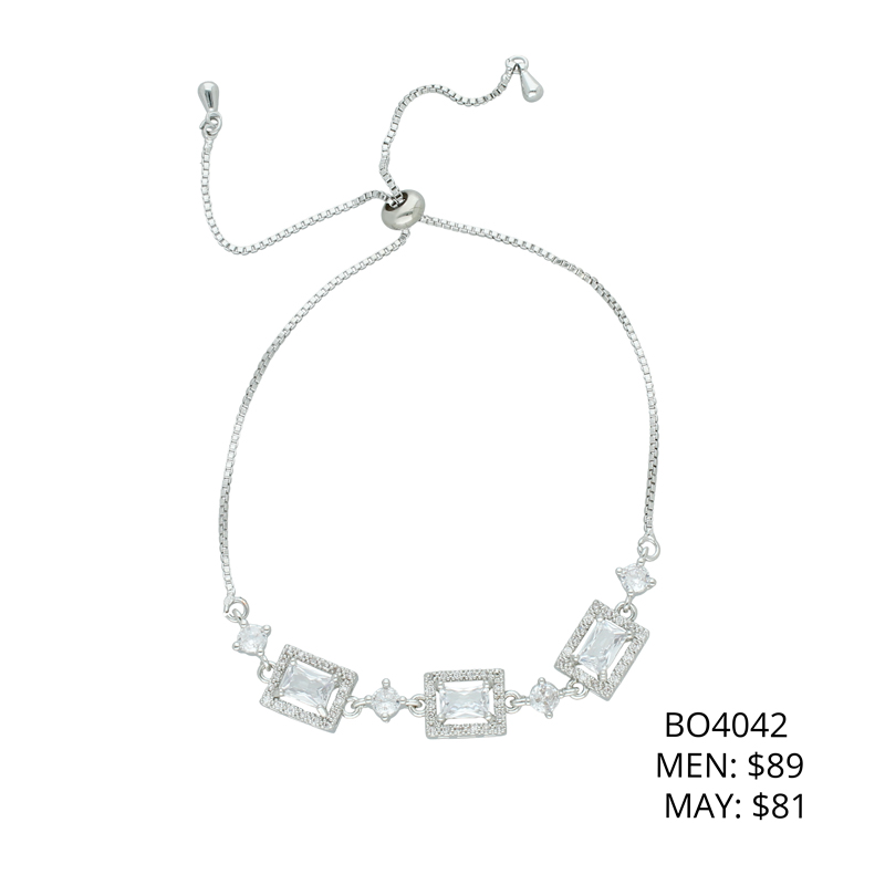 Pulsera Chapa de Oro Plata Cuadro Piedra BO4042
